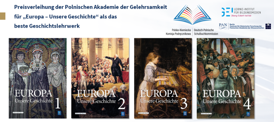 Die unabhängige Polnische Akademie der Gelehrsamkeit (Polska Akademia Umiejętności – PAU) mit Sitz in Krakau wird am 15. Juni 2024 das in deutsch-polnischer Zusammenarbeit entstandene Schulbuch „Europa – Unsere Geschichte / Europa. Nasza historia“ mit seinem Schulbuchpreis auszeichnen.