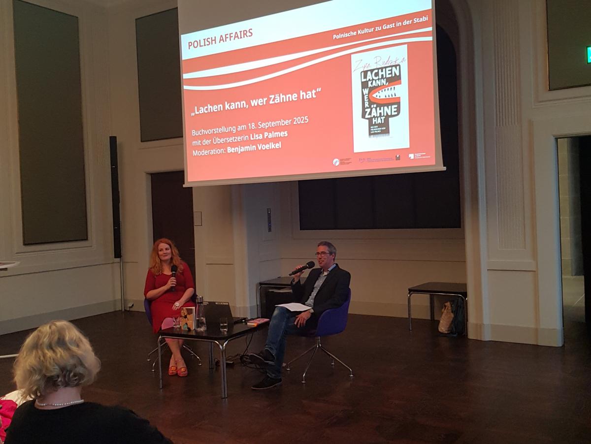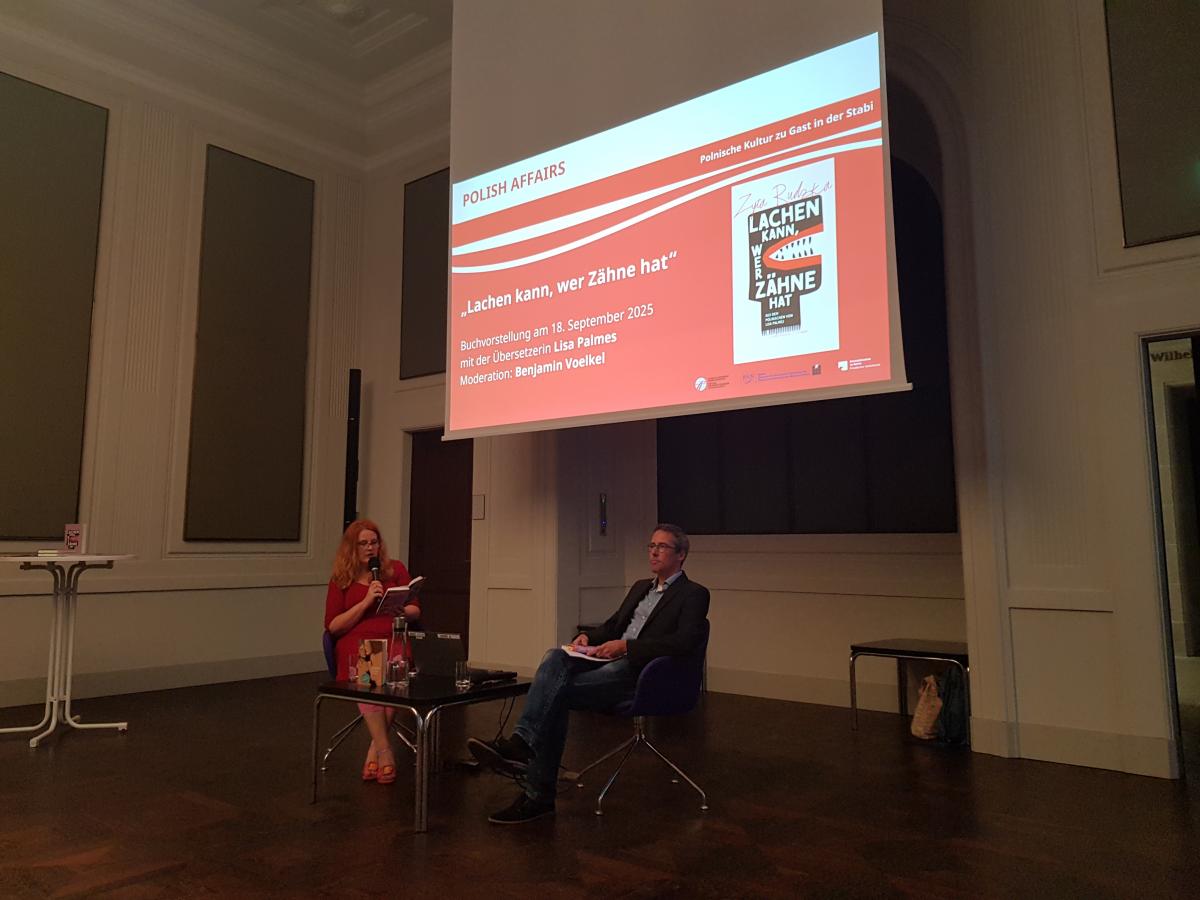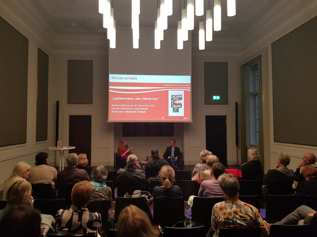 Die Veranstaltungsreihe „Polish Affairs. Polnische Kultur zu Gast in der Stabi“ bietet in Gesprächen mit Autor:innen, Wissenschaftler:innen und Übersetzer:innen tiefe Einblicke und intensiven Austausch rund um Polen und polnische Publikationen. Das Programm reicht von historischen Themen über Biografien und Reportagen bis zu polnischer Literatur.
