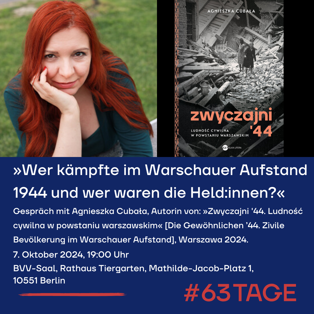 W ramach kampanii #63Tage z okazji 80. rocznicy Powstania Warszawskiego Niemiecki Instytut Spraw Polskich w Darmstadt oraz Dom Polsko-Niemiecki koordynują wydarzenia organizowane przez różnych partnerów w Berlinie. Kampania i szereg wydarzeń są wspierane finansowo przez Fundację Lotto Berlin.